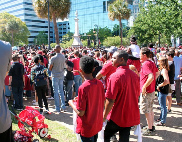 Sunday afternoon, the 9th. of April, 2017 was an absolutely gorgeous spring day in downtown Columbia, South Carolina. The weather was perfect with temperatures in the mid 70s and cloudless blue skies. It was a great day to be outdoors which is where thousands of people gathered on Main Street to celebrate the good times of bringing the NCAA Women’s Basketball Championship trophy home to the University of South Carolina with a ticker-tape parade minus the ticker-tape.
