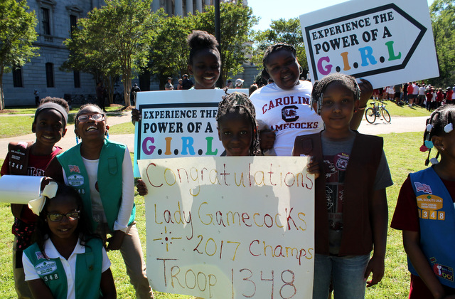 Sunday afternoon, the 9th. of April, 2017 was an absolutely gorgeous spring day in downtown Columbia, South Carolina. The weather was perfect with temperatures in the mid 70s and cloudless blue skies. It was a great day to be outdoors which is where thousands of people gathered on Main Street to celebrate the good times of bringing the NCAA Women’s Basketball Championship trophy home to the University of South Carolina with a ticker-tape parade minus the ticker-tape.