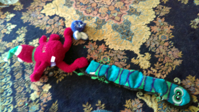 Our holiday season was a happy one at Casa de Cardinal, but we are a little worse for the wear. Pretty has had a bad case of the epizootie but is working on taking down the holiday decorations and putting them away for next year. As for Charly and Spike, my everyday traveling companions, this is how they feel about their new toys and life in general.