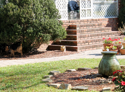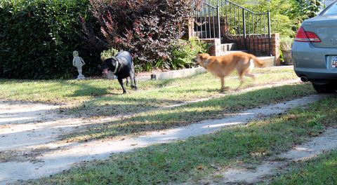 Red and Spike busy exploring – Spike has always been a follower