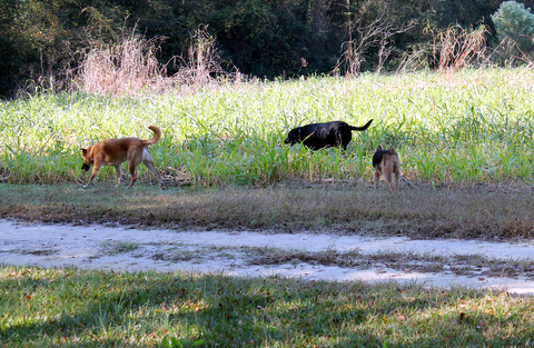 But it is the acreage surrounding the home that has been a favorite spot for our dogs to run until their tongues hang out with joy and weariness. So in October of 2014 Pretty and I took our three dogs, The Red Man (rescued Welsh terrier), Chelsea the tennis ball chaser (black lab), and Spike the squirrel chaser (yellow lab/ shepherd mix) out to the farm for an afternoon romp. The day was one of those days you can forgive South Carolina its blistering summer heat for the perfect weather she gives us in autumn.