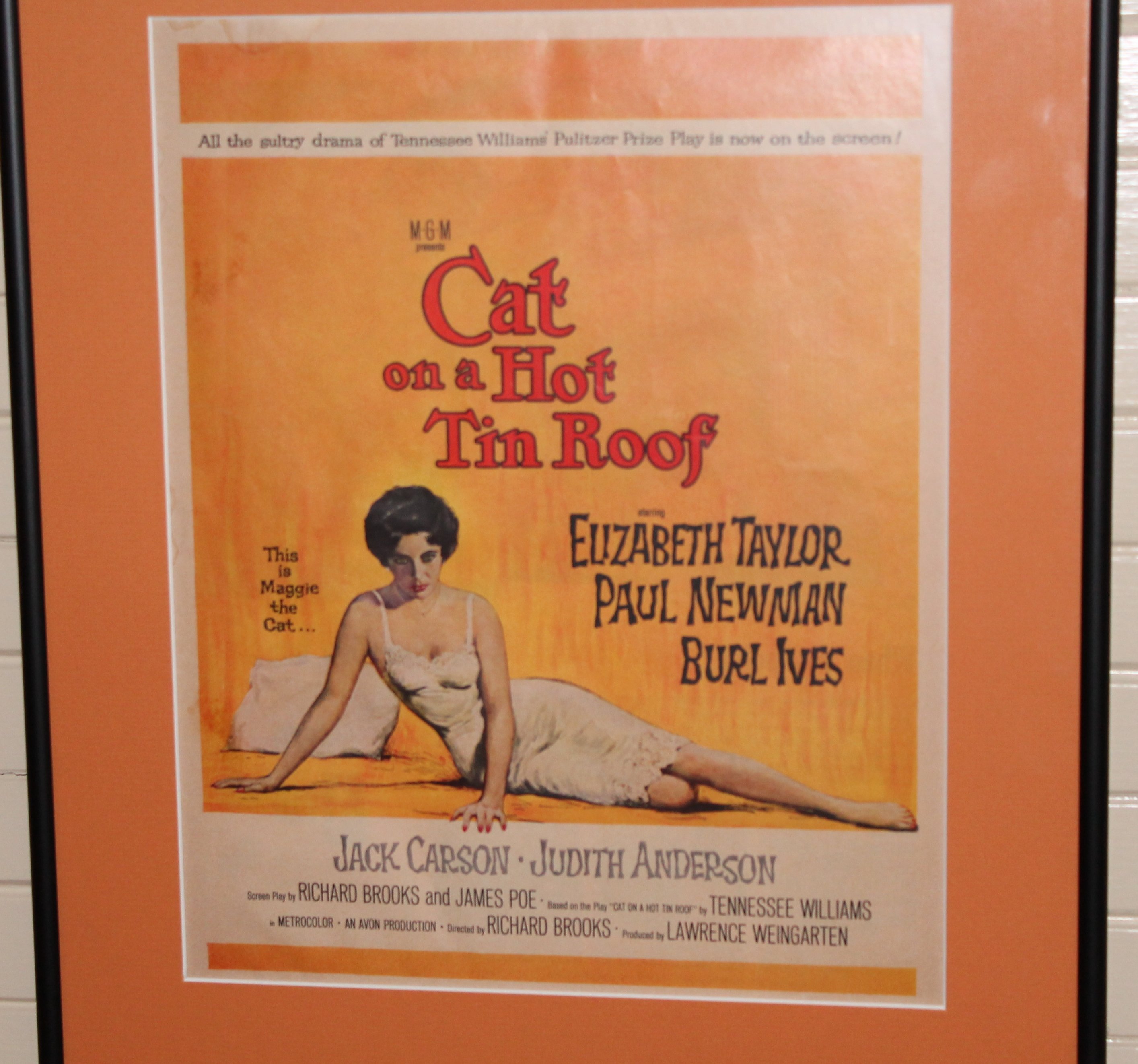 I visited a friend this week and saw the Cat on a Hot Tin Roof poster (a poster he bought from me at one of our downsizing yard sales) hanging in his den. I was immediately reminded of the time fifty years ago I fell in love with Elizabeth Taylor, wrote her a fan letter and received a glossy 5 x 7 “autographed” photo of her from MGM. Love, Liz, she signed.