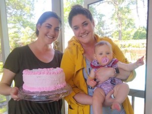 Ella, her Mama and her Aunt Coco bring me scrumptious birthday cake