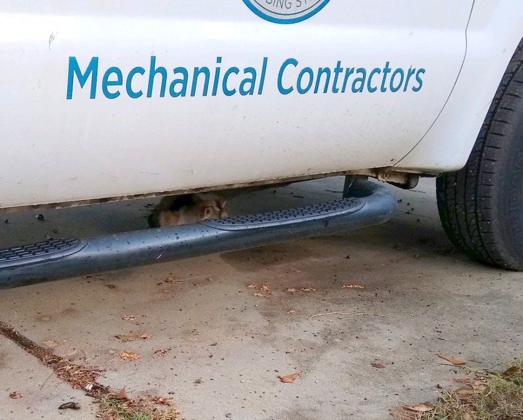 Lilibets herself under Neighbor John’s truck in his driveway!