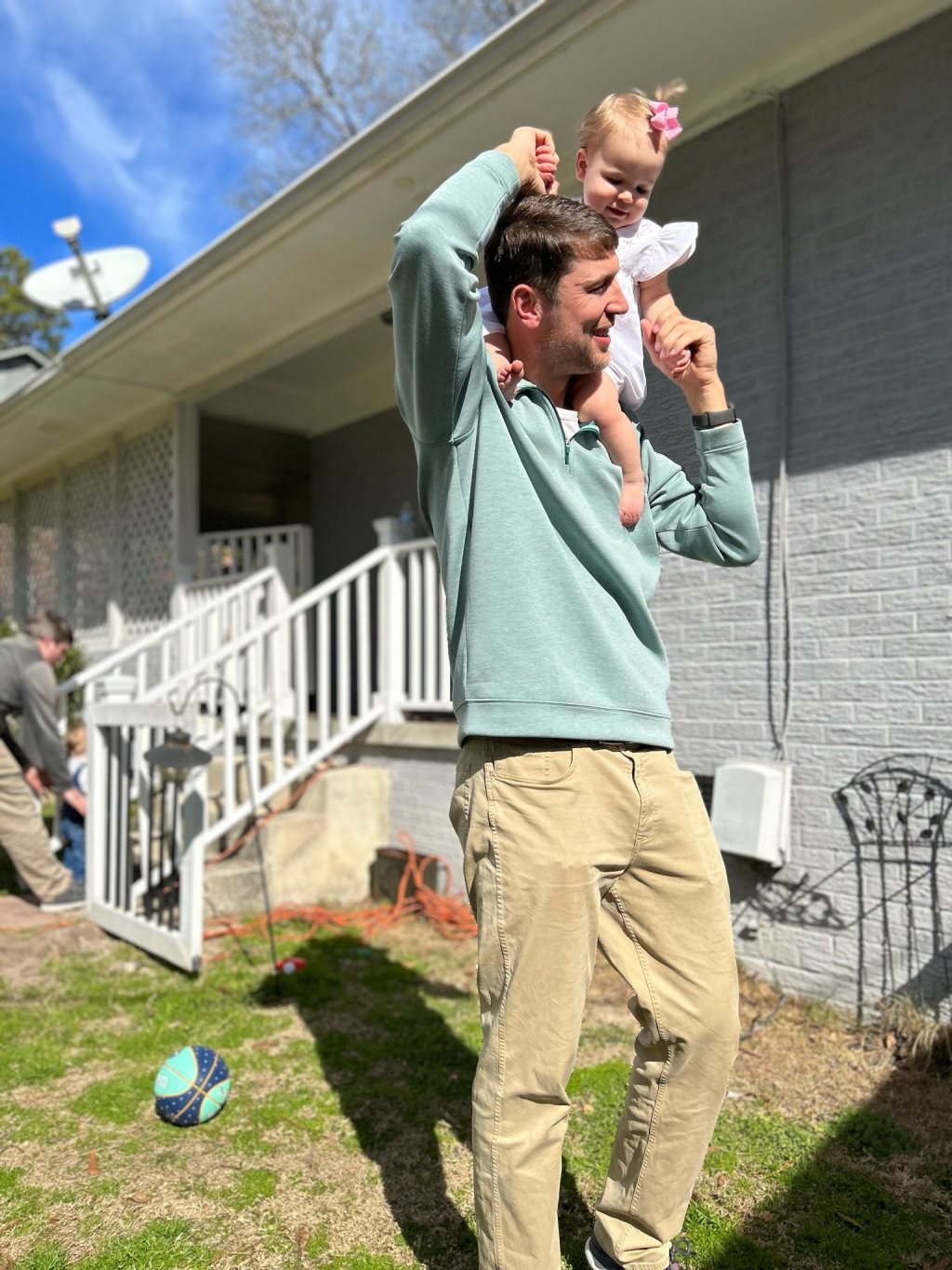 Unbelievable she’s one! We had planned to have to stay inside at Drew and Caroline’s, but the weather turned so nice and warm. It was great for the kids – and for us, too, to have all those little ones running around out there instead of inside!! All in all, a grand time.