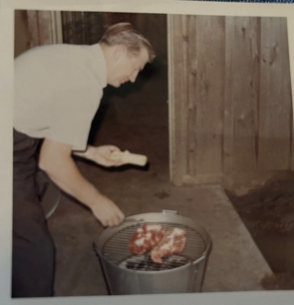 Daddy with his small grill where he loved to cook steaks