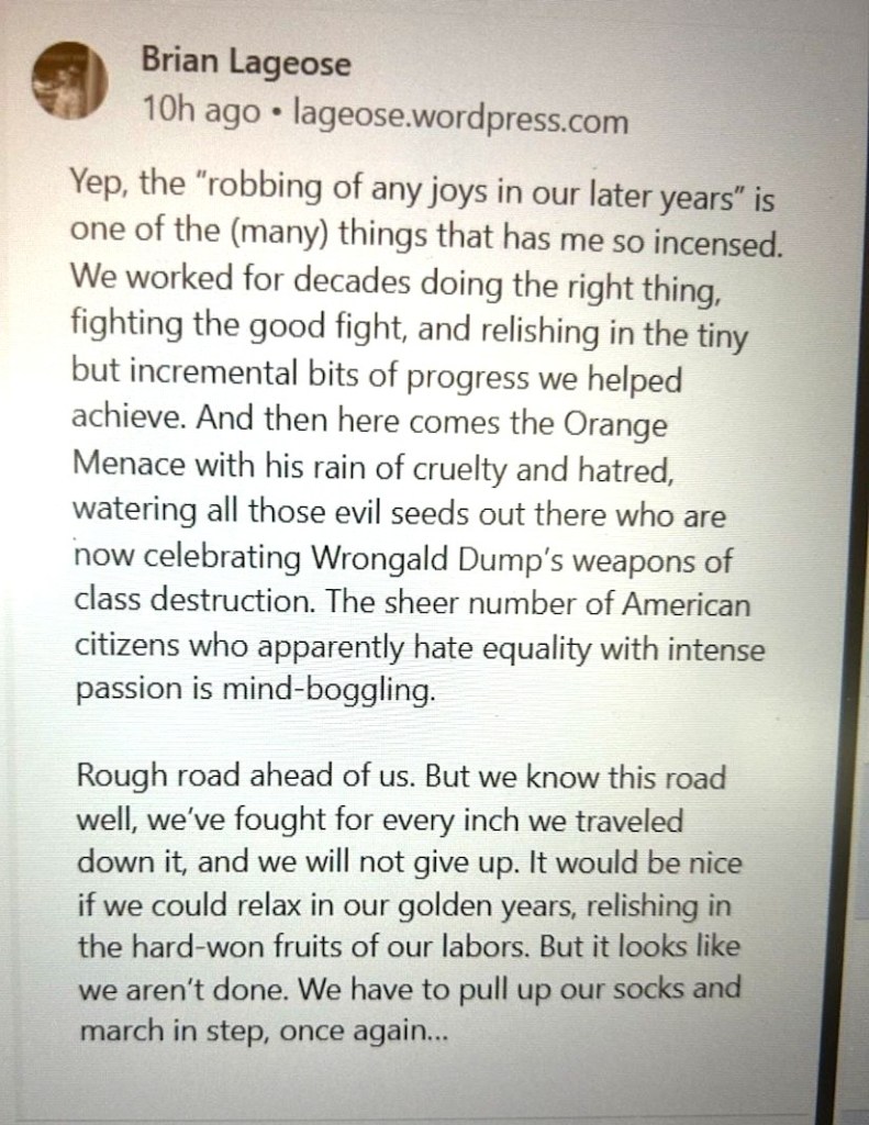 For the past seventeen years, I’ve enjoyed the company of a special group of friends that have made my blogging experience both fun and challenging. Brian Lageose is one of this group of select cyberspace blogging buddies whose clever posts run the gamut from hysterically funny to sobering insights on the human condition – he’s one of my friends that I look to whenever I need inspiration.