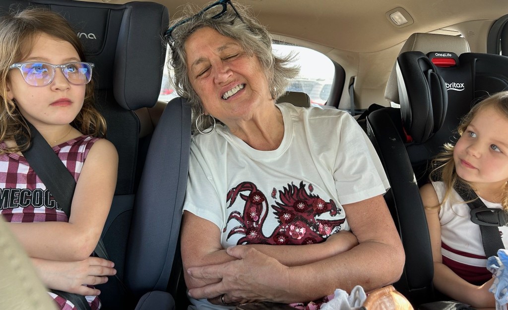 Ella took a movie break while daddy Drew drove us to the motel. Molly wondered why Nana was sleeping with a smile on her face? Everyone wearing appropriate Gamecock apparel!