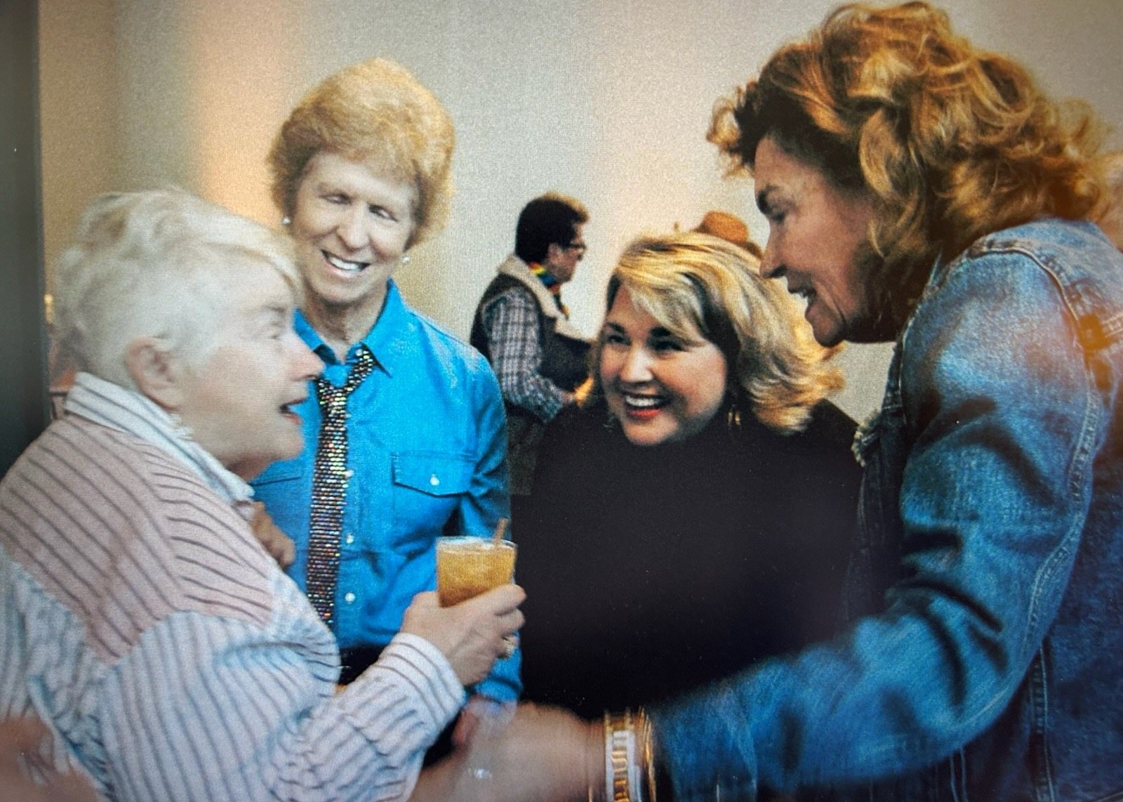 I tried to speak and take pictures with everyone who came, but that was impossible. The party co-conspirators said more than a hundred people came to surprise me on a Friday night in March. I was overwhelmed by the decorations, fabulous music played by a great DJ, tables for everyone who wanted to sit to enjoy the incredible food and adult beverages – no stone left unturned for fun together in the salute to my Texas heritage with a Rhinestone Cowboy theme.