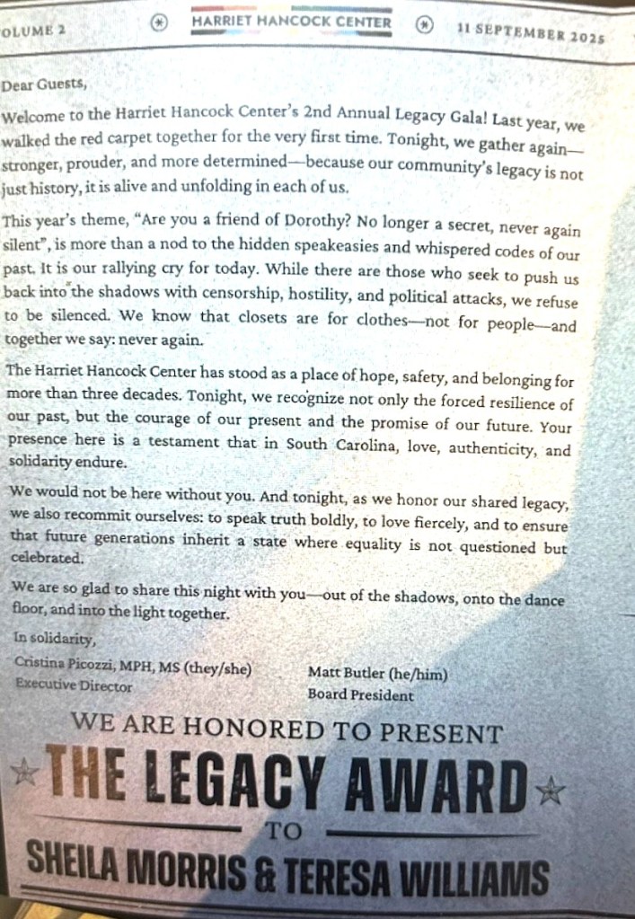 Being celebrated for our work in the LGBTQ+ community in the midlands of South Carolina was a remarkable experience last week for Pretty and me. We wanted to share a few highlights with our friends in cyberspace, too.
