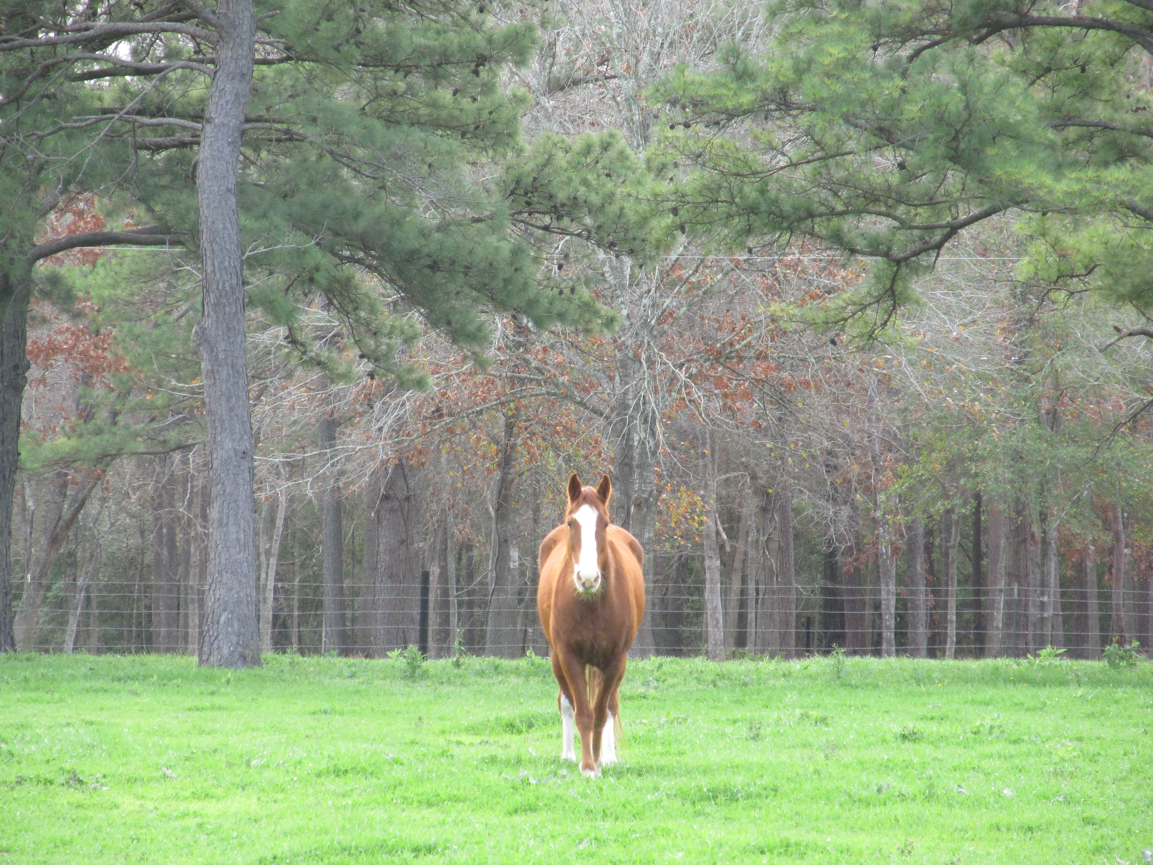 I didn’t have to drive more than a mile to find the scenery that I love. As soon as I passed Old Plantersville Road, I began to see the patches of bluebonnets that make 105 spectacular in April. At first, they were scattered in with the reddish-orange Indian blankets and the pale pink buttercups and only appeared on the sides of the road. Then, the patches grew thick with the deep blue that is the mature color of the state flower. A few minutes more, and I saw a ranch with a sea of bluebonnets in its pastures, and it reminded me of the dazzling Caribbean ocean without waves. I knew it was a good day to be on the road.
