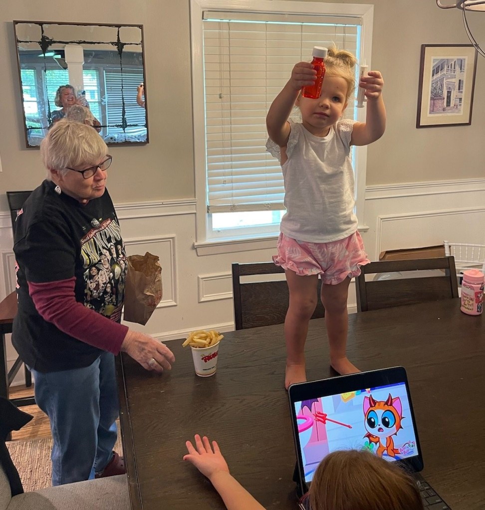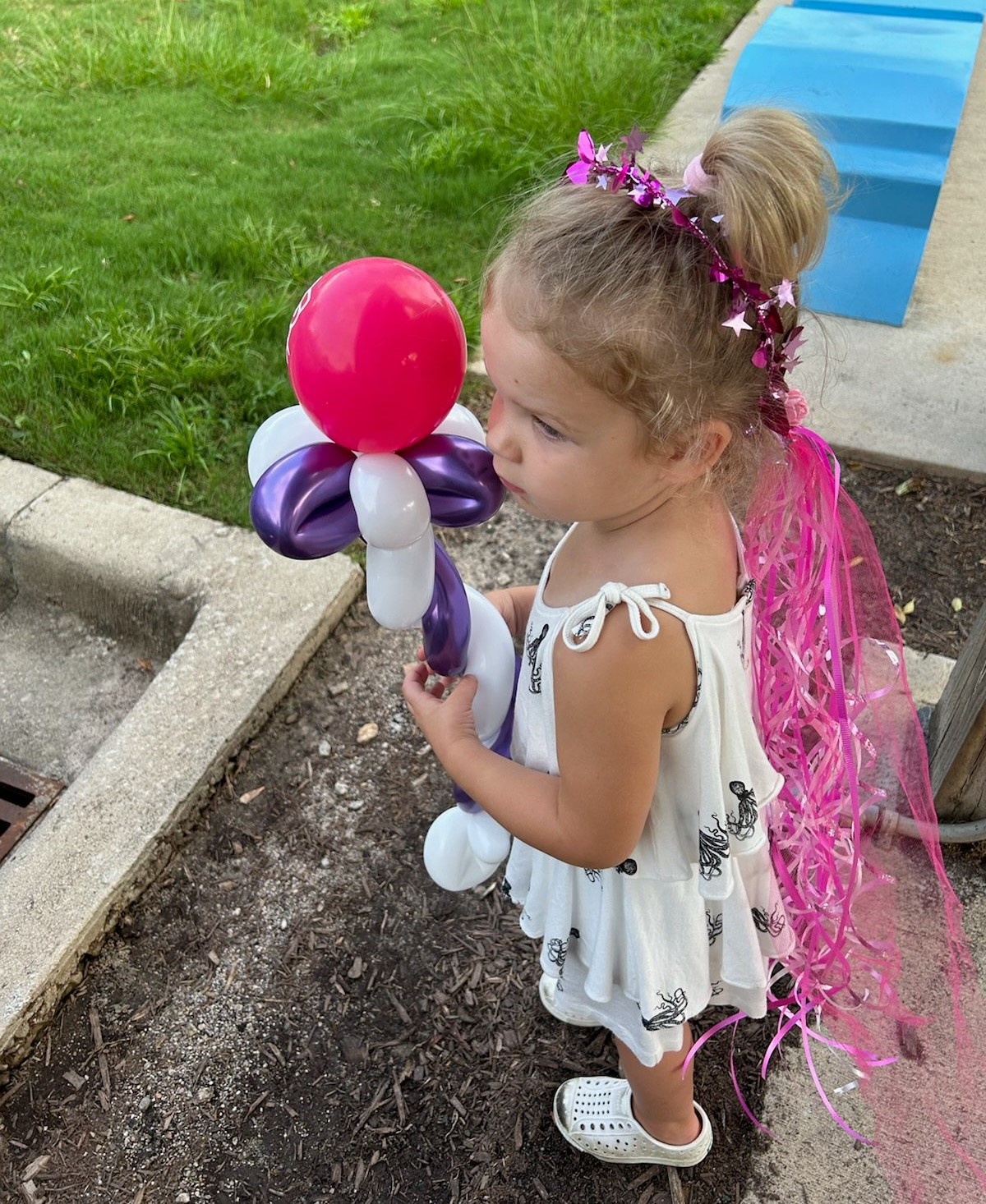Two new little girls have been added to the family courtesy of our two Millenials since that birthday celebration in 2019, and last night after dessert we walked outside to visit a local street fair where a woman brought smiles to all by making balloon art and princess headbands.