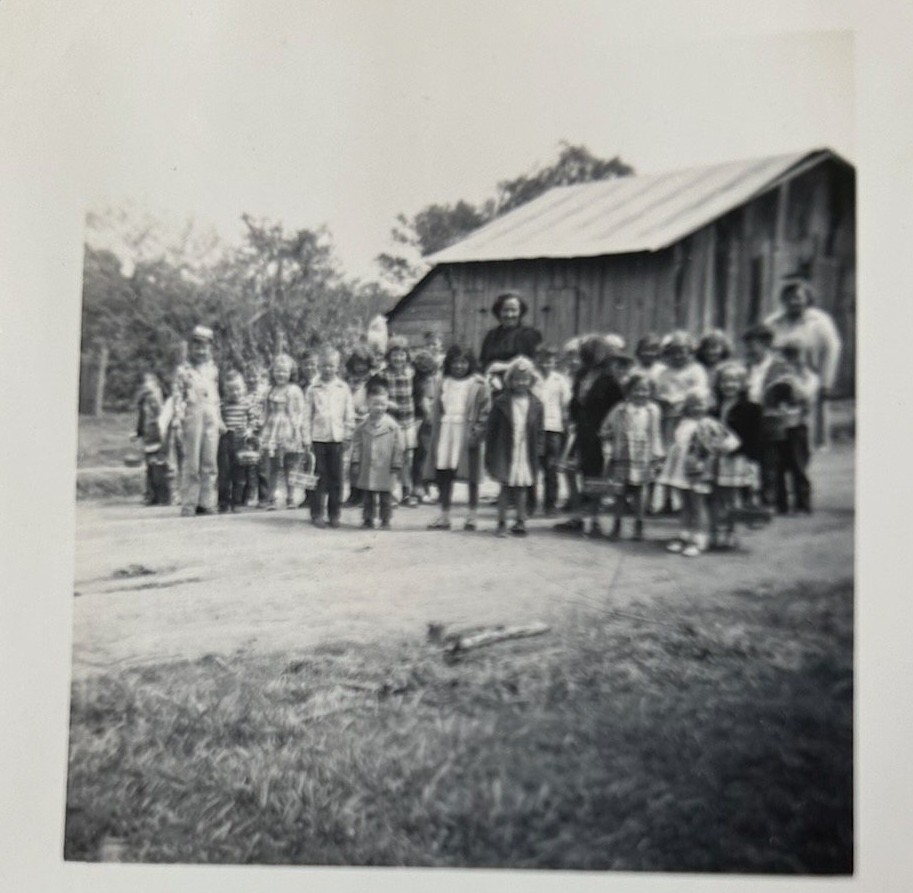The little girl’s first grade class with teacher Mrs. Lucille Leewho gave us the gift of reading. She taught first and second grade in one room.