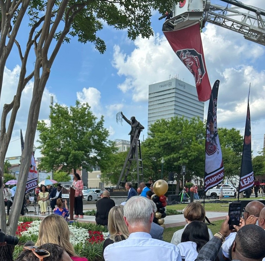 My cell phone rang which interrupted pre-nap reveries, and I was happy to talk to my friend, Garner, who was one of my best basketball buddies ever. He invited me to go with him to the unveiling of the Dawn Staley Statue here in Columbia at 4 o’clock that afternoon. I couldn’t accept fast enough! The day was an unexpected treat.