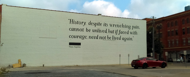 This quotation from Maya Angelou is written on the walls of what is now The Legacy Museum: From Enslavement to Mass Incarceration located on the site of a former warehouse where slaves were kept in prison while awaiting their fate in Montgomery, Alabama before the Civil War and the emancipation proclamation. Pretty, our tour guide, had made reservations for us to visit this museum at 9:30 last Saturday morning so our group of four was up and about very early on a gorgeous warm day. Our motel was right around the corner from the museum so we all walked over – still laughing and teasing each other about the winning and losing from the card games the night before.