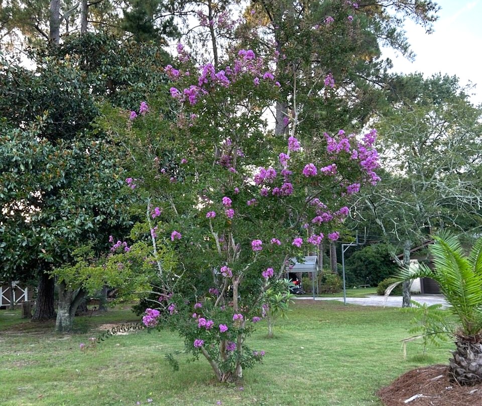 This particular Navajo Blessingway spoke to me because I feel its truth in the summertime every day that I walk in our neighborhood. Summertime in the South should be called Crape Myrtle Season because the gorgeous blossoms of all colors are at their peak in the heat and humidity that define July with spillovers into August. I have always loved the crape myrtles since I grew up with them in my childhood – the Texas heat was perfect for the hot pink crape myrtles that grew along the small sidewalk at my grandmother’s home in Grimes County.