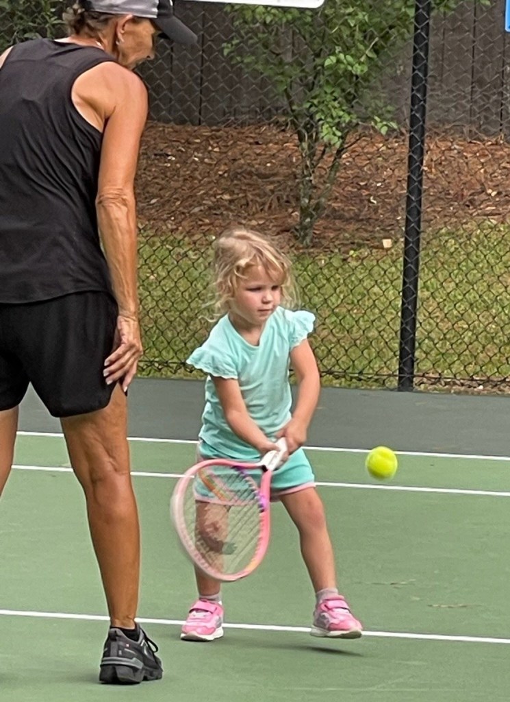 Molly has joined Big Sis Ella for tennis lessons from Miss Sherry