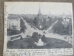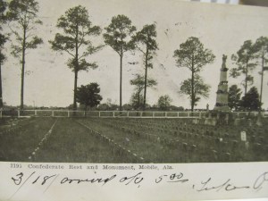 In July, 1906 Luke sends another “local” post card from Mobile with a message saying he is leaving soon for another place that Bessie clearly already knows about. Not surprisingly, his last card from Mobile is a street with imposing architecture.