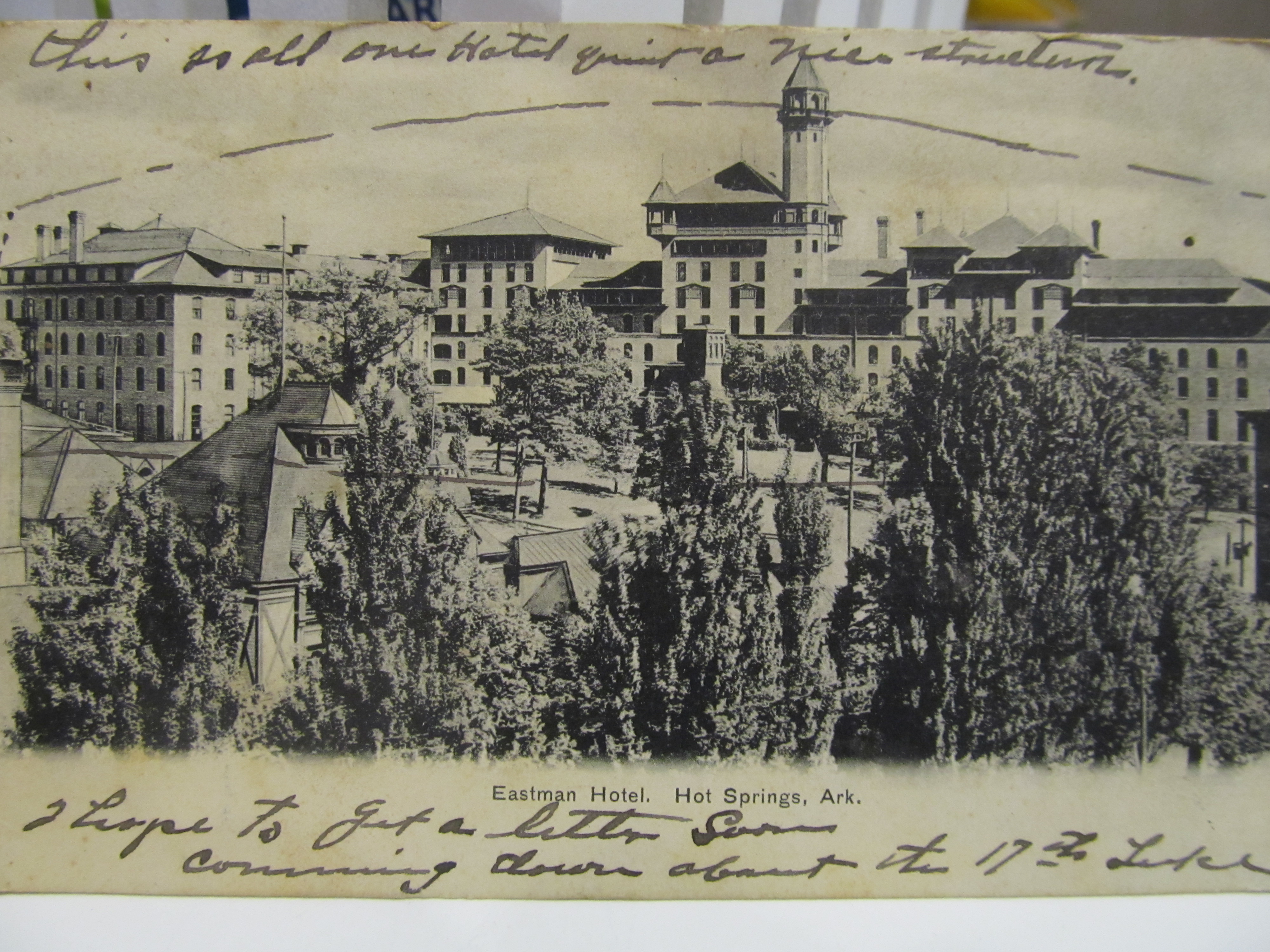 The Eastman Hotel had over 500 rooms and was one of the largest in Hot Springs at the turn of the twentieth century. The town was home to several major league baseball training camps and it wouldn’t have been unusual for Luke to see Babe Ruth walking from the hotel to the racetrack after practice. He might not have noticed if he were on the way to the post office, though.