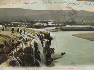 The final post card postmarked in Hot Springs was a breathtaking view of the falls pouring into the Big Horn River in Hot Springs County, Wyoming with the town of Thermopolis snuggled in the valley next to the river. Quite a different tune in this card as if to halfway apologize for the brusqueness of the previous one. With best respect from Luke. Sweet.