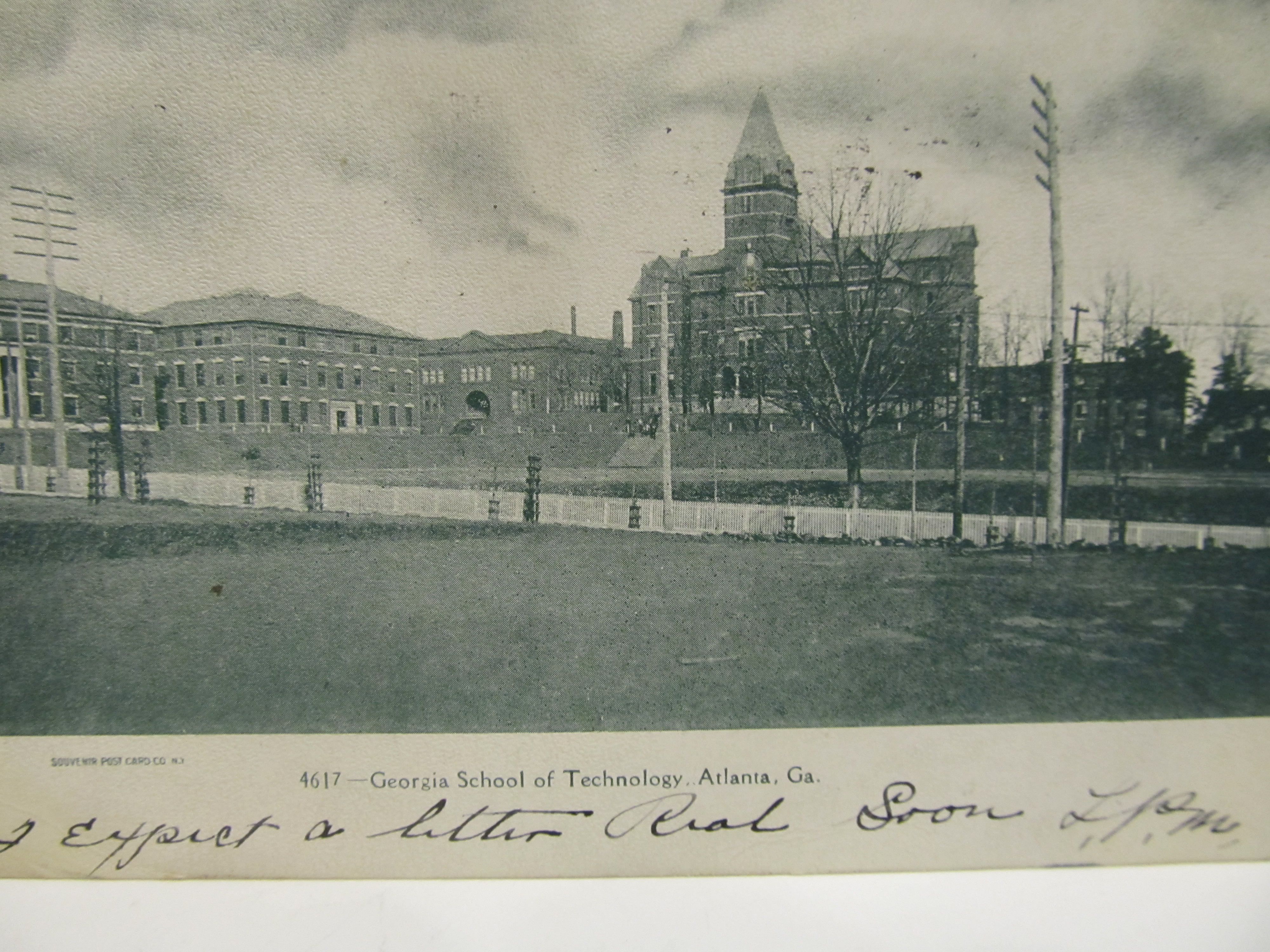 The Georgia School of Technology which later came to be known as the Georgia Institute of Technology or Georgia Tech was started in 1885 and offered one degree in mechanical engineering. By the time Luke enrolled in the fall of 1906, degrees in civil, electrical and chemical engineering had been added to the curriculum. Going to school in Atlanta meant being closer to Miss Bessie Bogan of Alabama City, but letters and post cards were still the only ways to keep in touch. Passive aggressive I hope to get a letter at the first of August was now a much bolder I expect a letter Real Soon by the end of the month.