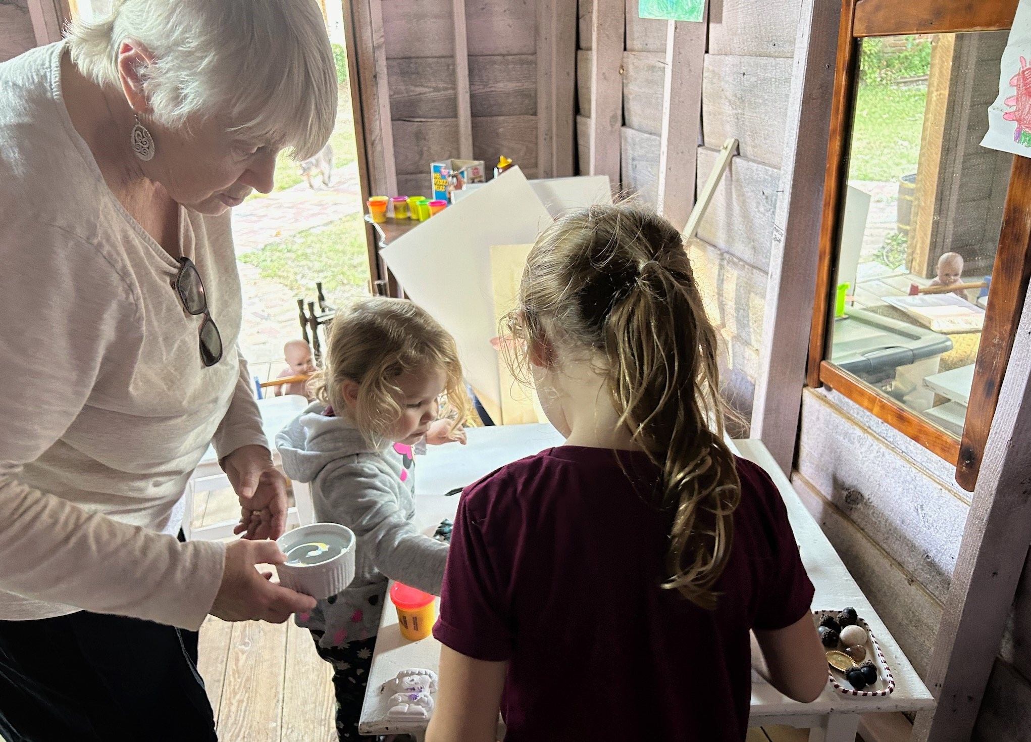 “Triplets,” Mama said with excitement. “Imagine having not one, not two, but three baby dolls at once. Two girls and a boy. Isn’t that fun? Look, they have a bottle you can feed them with. See, their little mouths can open. You can practice feeding them. Aren’t they wonderful?”