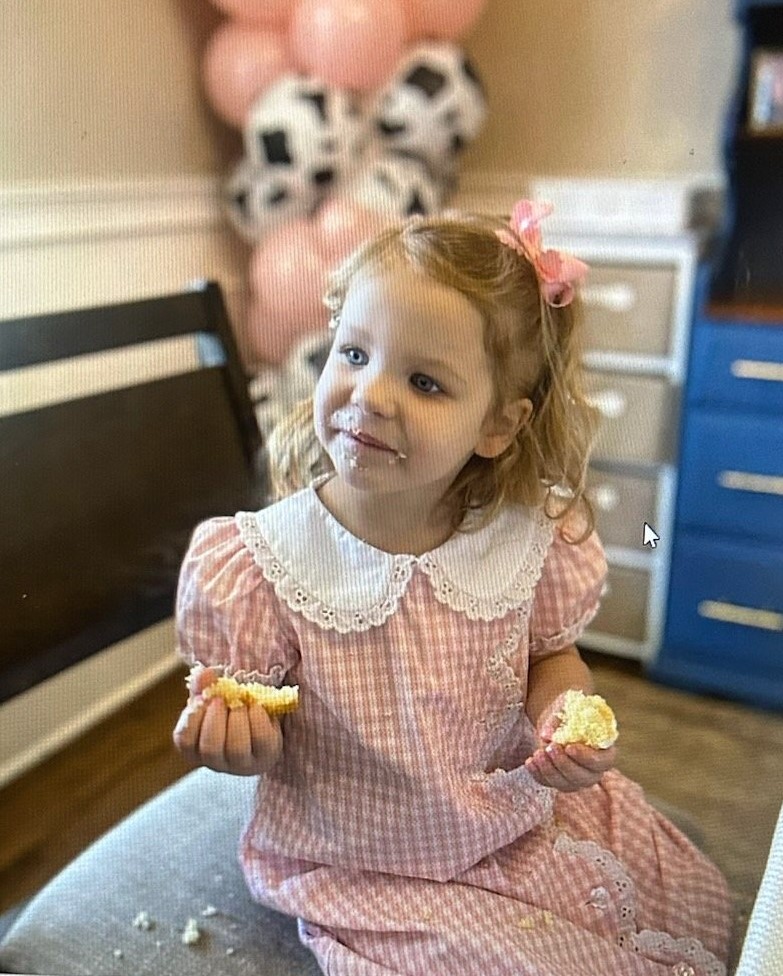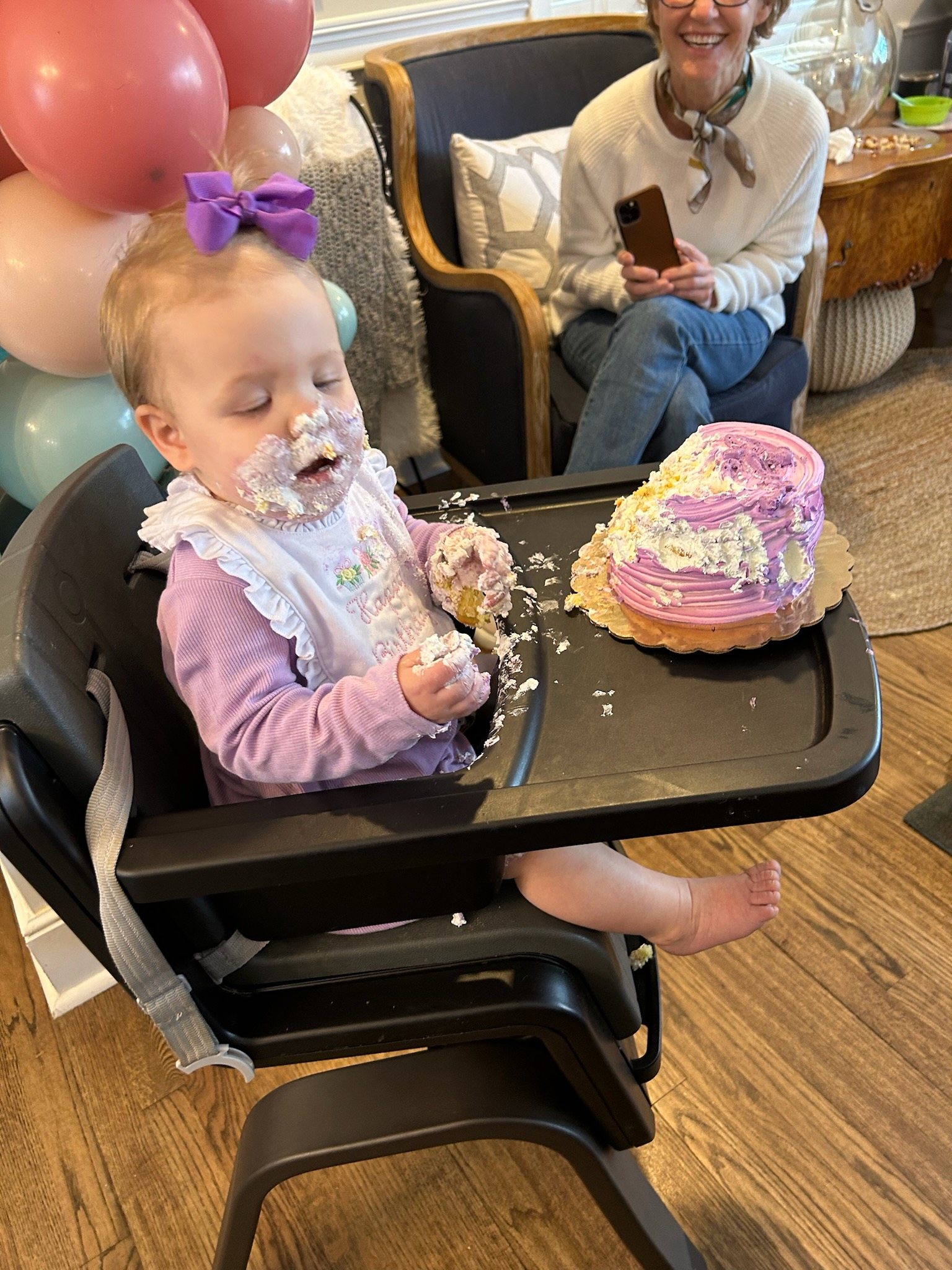 (maternal grandmother Gigi laughs at Molly’s first cake experience)