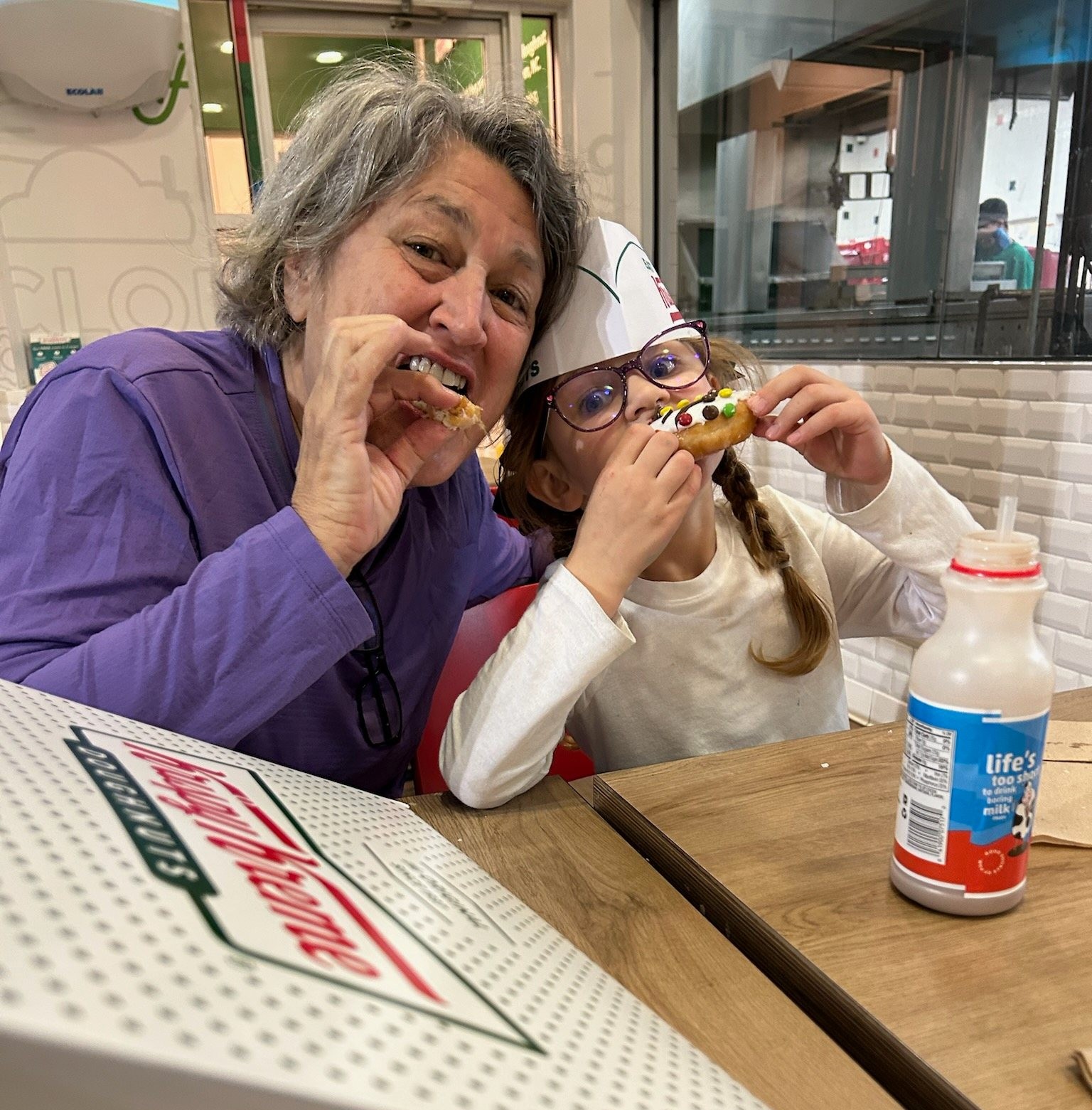 Nana and Ella love Krispy Kreme donuts
