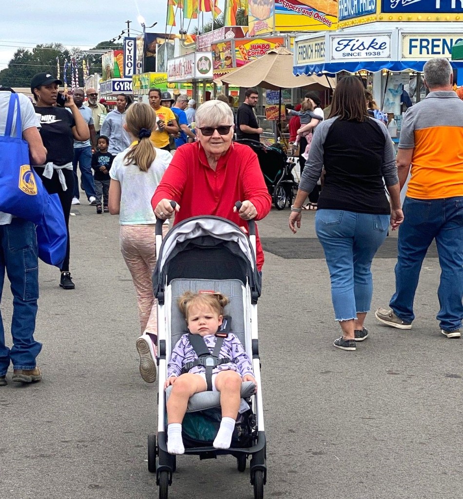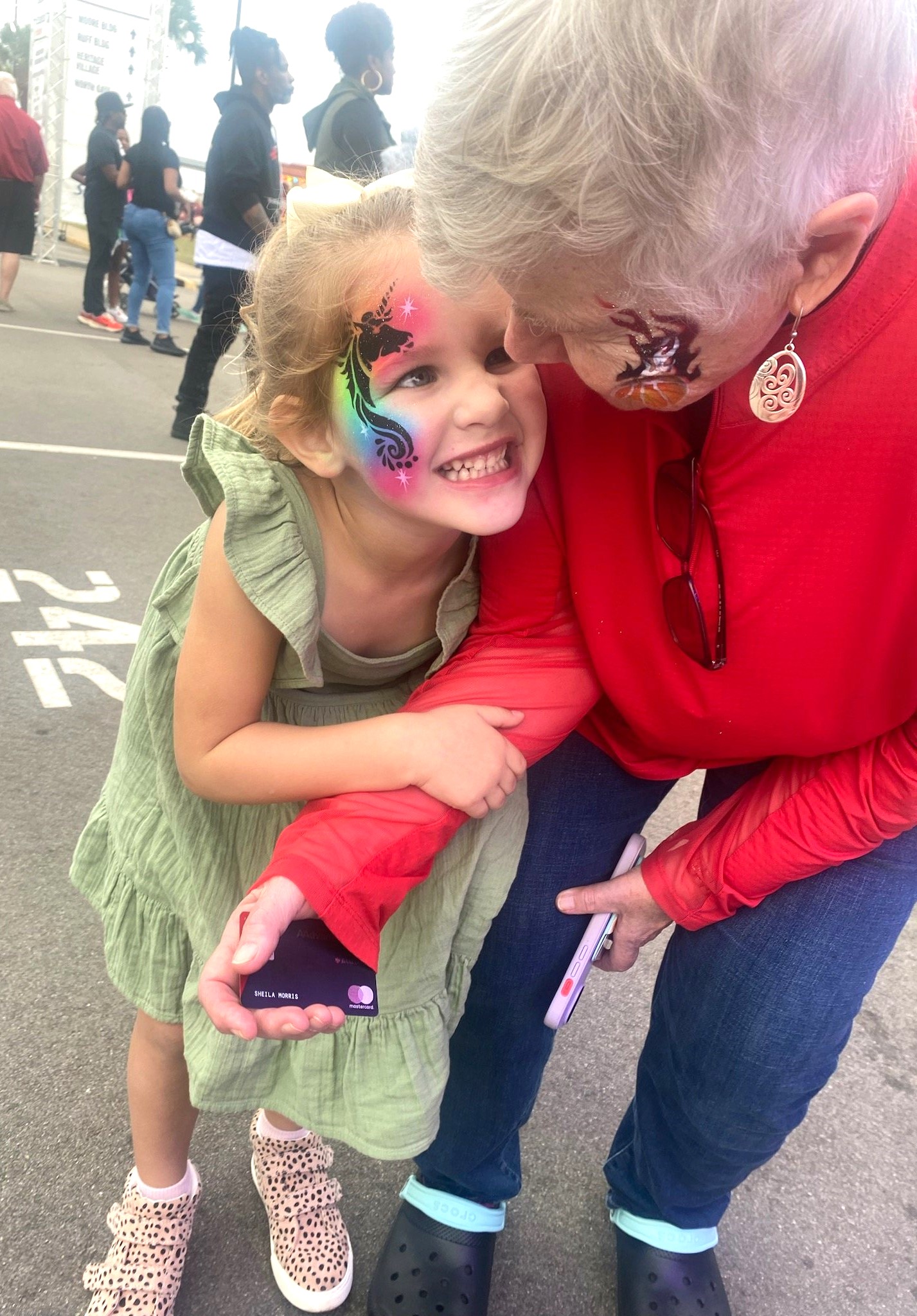 The South Carolina State Fair is in town thru October 22nd. and Friday night at the Fair with three granddaughters was a memory maker. Our core group pictured above: four year oldElla, six year old Collins, Kitty before face paint, and Kaka who has a long tradition of State Fair attendance. Ella adores Collins who is the granddaughter of our best friends Kitty and Kaka. Our group also included Nana Pretty, Pretty Too Caroline the mother of Ella and Molly who spent much of the evening being whirled around in a stroller on loan from Grant who works with Kaka. The stroller was a lifesaver!