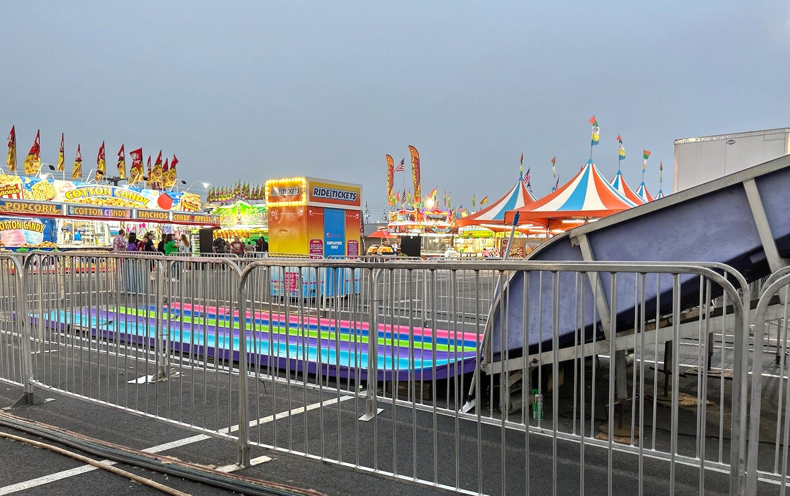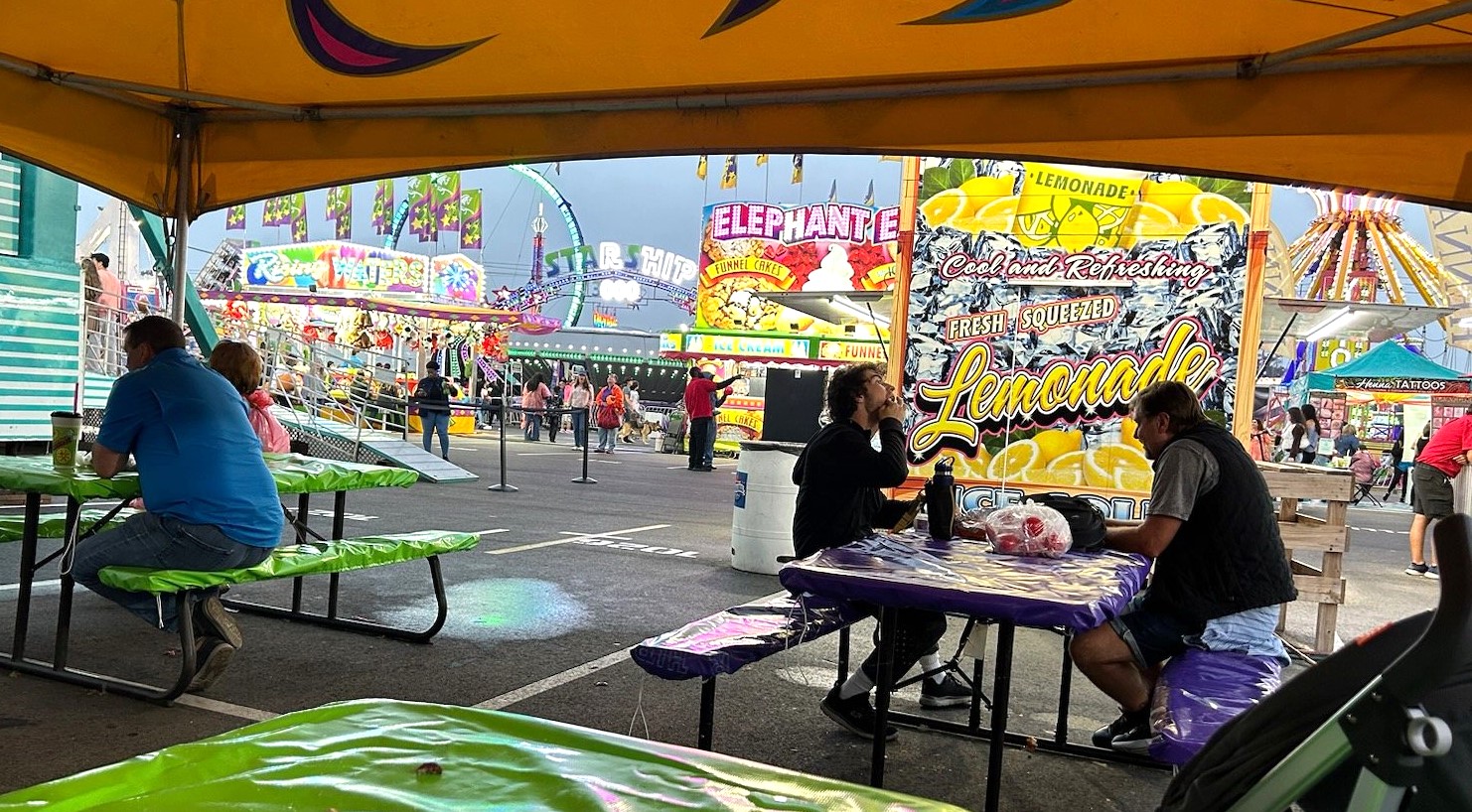 as girls take break from slides, monster rides, bumper cars and Big Ferris Wheel