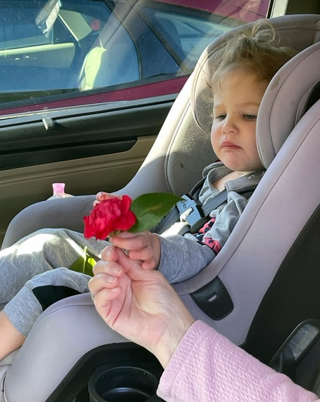 Yesterday afternoon Pretty and I picked up our two year old granddaughter after her preschool. The heaviness I felt in my morning’s memories was magically transformed to joy in Ella’s delight with a camellia she picked from a shrub full of pink wonders.