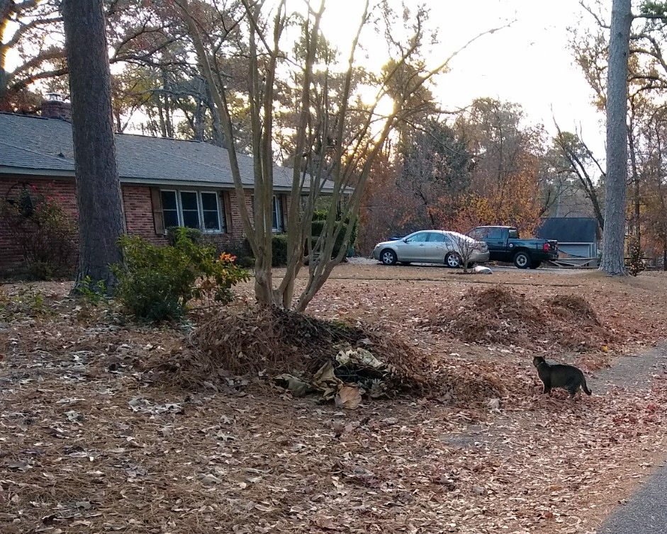 Yes, Pretty observed with her cat detective skills several weeks ago that we have neighbors a block down the street from our house (the opposite direction of Neighbor John’s cat condo) who regularly leave their garage door open at night…just enough for a cat to scoot under. She suggested that cat might be Bully Cat since I mentioned I saw him occasionally in the vicinity of the open garage door on my morning walks. Aha.