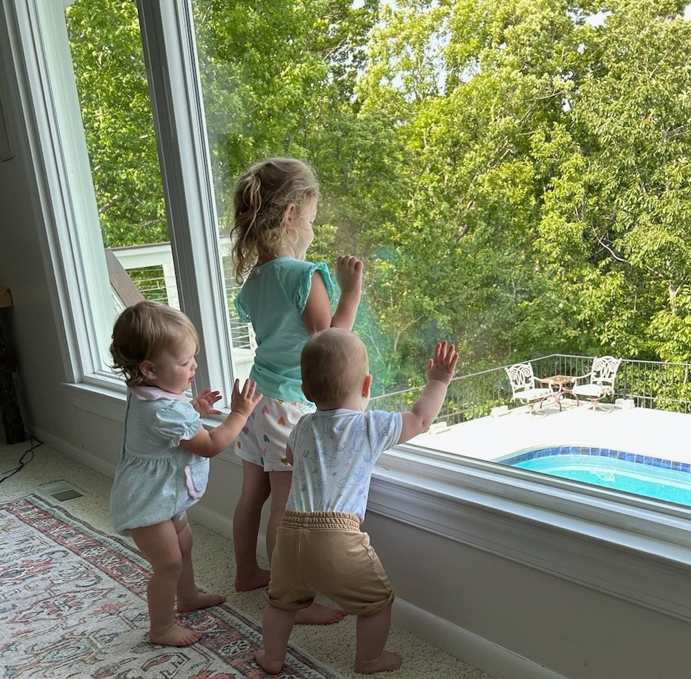 The window seat in the living area of the Airbnb was a favorite spot for the girls.