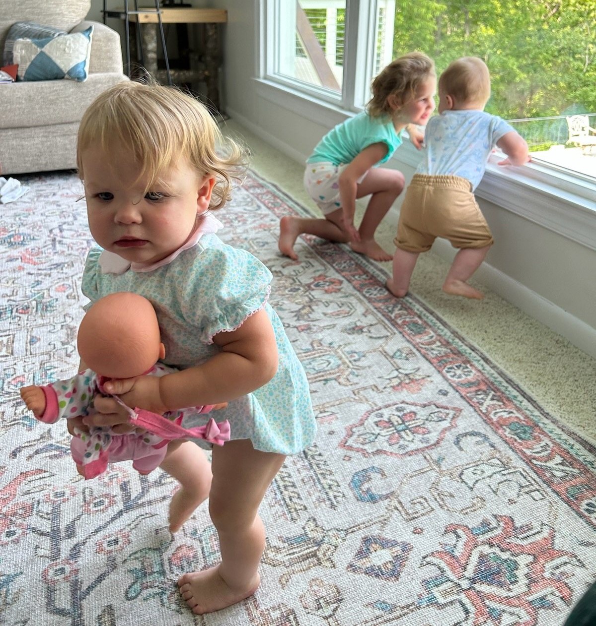 Remember I said two worries? The second one came when we were leaving Monday morning in the midst of a very strong storm on the mountain. Winds actually blowing ferociously, rain pouring on us as we carried our girls and belongings to the cars. I knew my Chief Worrier needed to be summoned when normally calm Drew shouted, Be quick – we have to get out of here – there’s a tree down on the road! Our little caravan of three vehicles left the house in a hurry on the small gravel road we had to use to come down the mountain. Not far from the house a power line was down across the road which meant we had to turn around and take a different direction. Whew. My nerves were a wreck by the time we reached Landrum where we met Papa Williams for lunch.