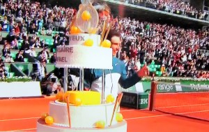 His conclusion was the same one he makes in every victory speech, thank you, thank you very much…which is what I want to say to Rafa Nadal for the past fifteen years of entertainment and inspiration as a warrior on the tennis courts, a man who plays every point as if it is his last, a man who never gives up, never gives in.