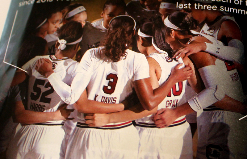 Congratulations to # 22 A’ja Wilson, the junior from Hopkins, South Carolina who was named to the All American 1st Team. The honor couldn’t be more well-deserved because Wilson has been not only the spark plug for the spirit of the team but also the checkered flag- waver to help her team stay focused to cross the finish line of every game this season whether on the bench or on the game floor. This girl has spunk, and I love spunk. You go, girl.